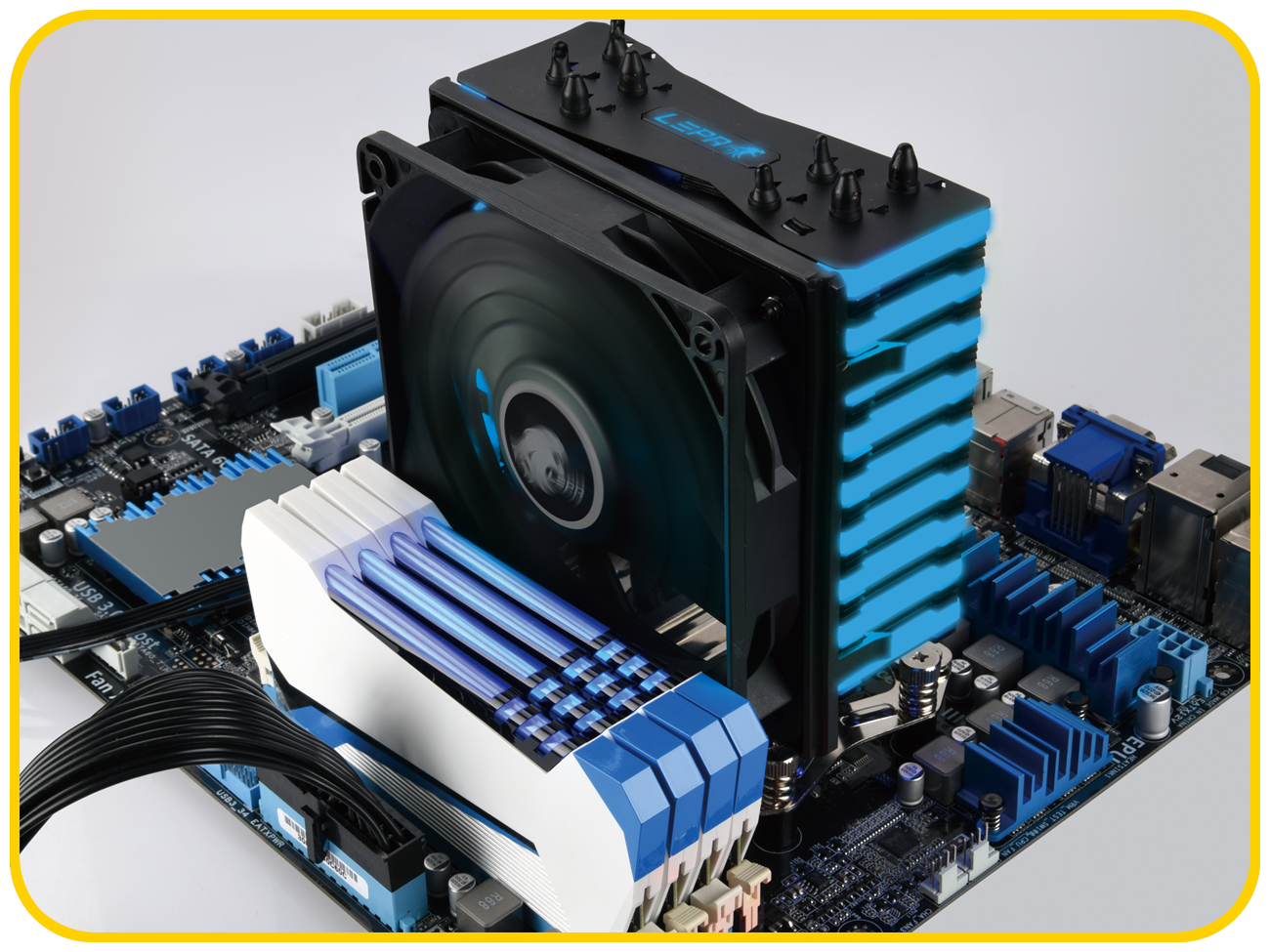 すべてのアルミニウムフィンに加工されたVGF technologyが、ヒートシンク内の風の流れに対し、ヒートパイプ背面の無風領域に空気を取り込む事で、ヒートシンク内のホットスポットを無くし冷却効果を高めます。 |